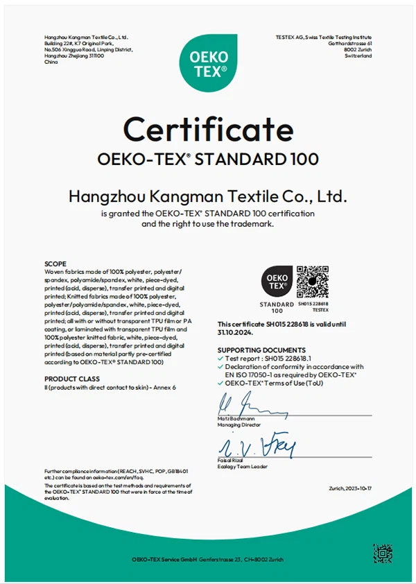 Kangman Textile té 30 anys d'experiència i història d'impressió i tenyit tèxtils, amb servei, qualitat, rendiment de costos i innovació i desenvolupament de productes com a competitivitat bàsica, està compromès amb la investigació i el desenvolupament de productes de tela de gamma alta. El tèxtil K&M també té la seva fàbrica de tintura dependent, un centre de proves intern, un excel·lent equip d'R + D i un equip de vendes actiu, pot dissenyar i desenvolupar teixits segons els requisits del client. Al mateix temps, tenim una gamma completa de productes de tela, una varietat de mostres A4 gratuïtes per triar.